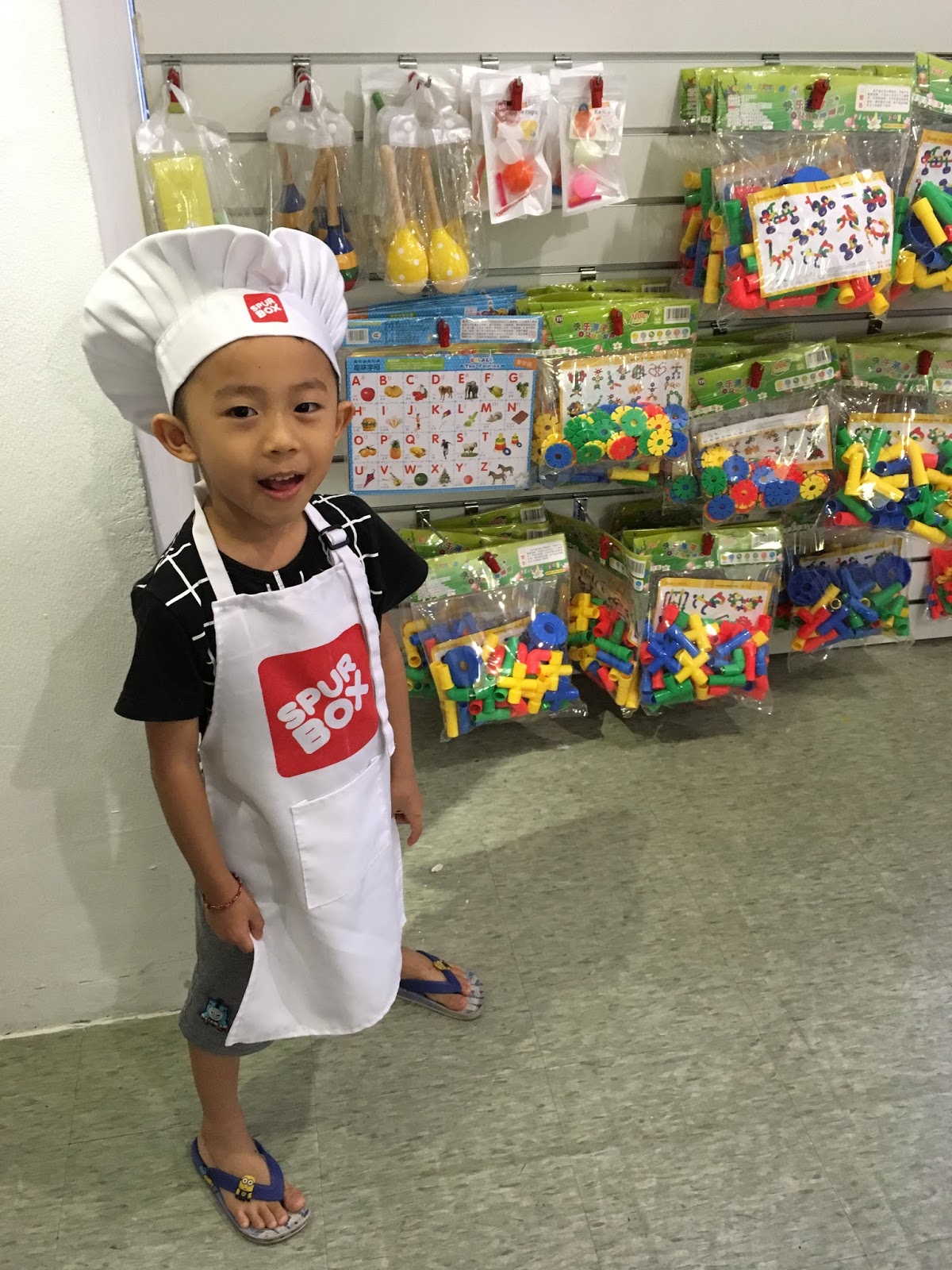 I came across Spurbox page from Facebook last year. They have a lot of classes which come with cooking, story telling, and arts & crafts. There are different themes every week. So we happened to be free this March holidays, and I signed up for one of the classes at SGD 40 for one and a half hour. Half an hour cooking, then story telling, and last 30 minutes arts & crafts.